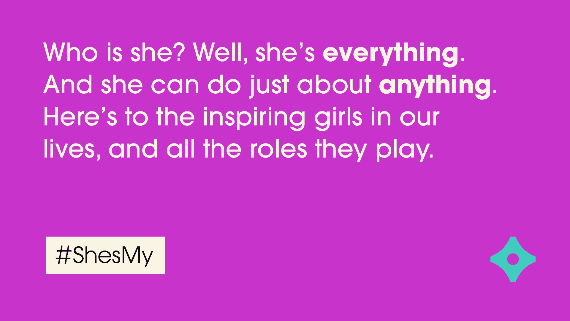 #ShesMy is a social celebration to do just that. Shine a spotlight on someone in your life by simply telling the world who she is to you.