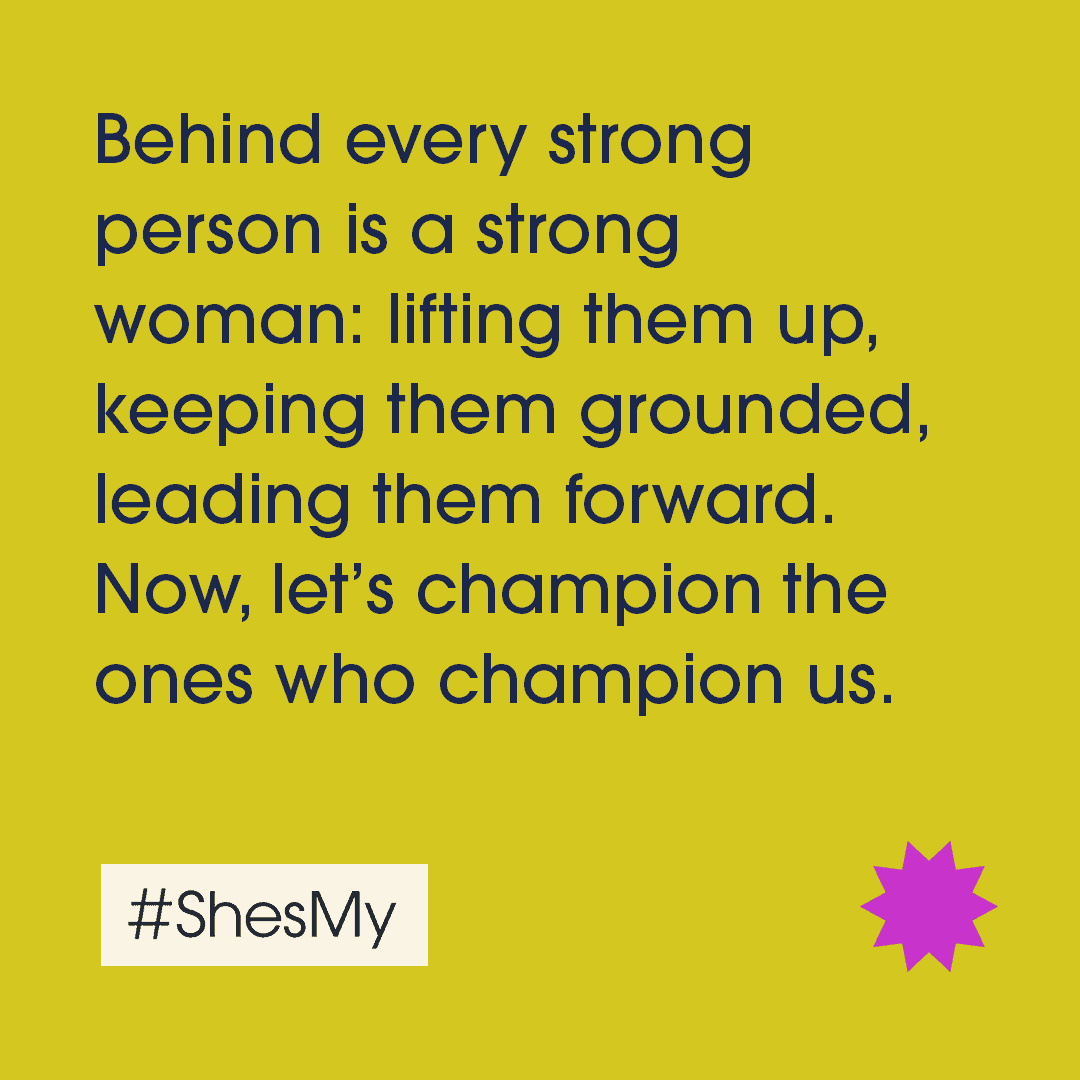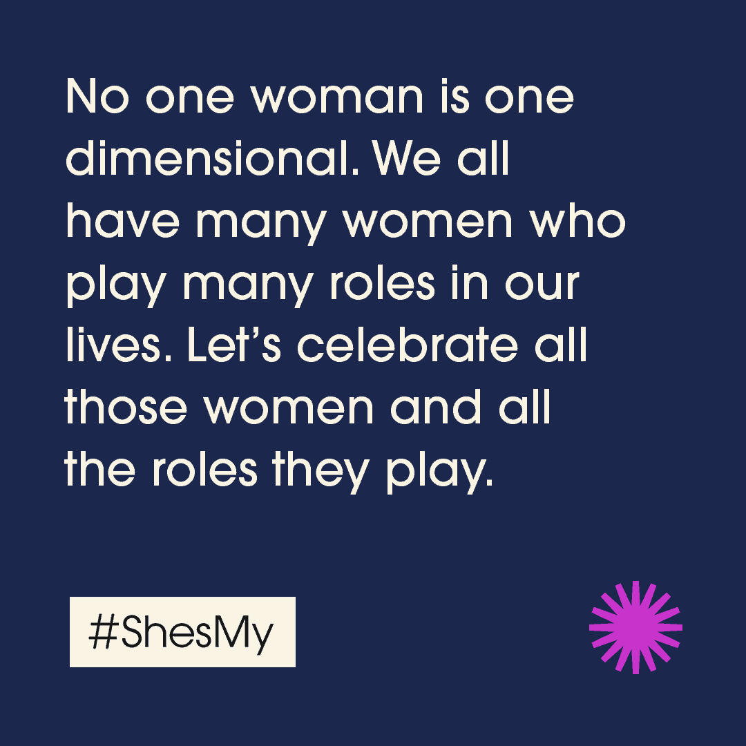 - Use the hashtag #ShesMy to describe who she is to you